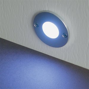 Finish:Aluminum, Light Bulb:(1)0.5w LED Diode, Bulb Color:Cool White LED MINIDISC LIGHT: APPLICATIONS STEPS AISLES PATHS DRIVEWAYS DIRECTION LIGHTING INFORMATION LIGHTING DECORATIVE LIGHTING MERCHANDISING LANDSCAPE ACCENTS FEATURES 60,000 hour LED life Low energy requirementsof 0.54 watt per fixture UL listed for in-wall, in-floor, outdoor wet,and outdoor burial applications Up to 100 fixtures per power supply 4 cover colors: Aluminum, Black, White, Bronze 6 LED colors: Warm White, Cool White, Blue, Green, Red, Amber Fits in any 1' diameter hole, 3-1/2' long Safe 12 volt, Class 2 power supply (not included)